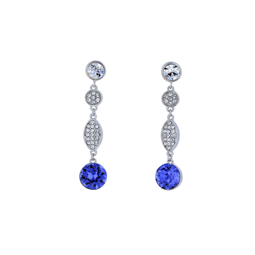 These elegant drop dangle earrings feature exquisite Austrian crystals in clear and sapphire blue, adding a refined shimmer to any ensemble. Their delicate design offers a subtle touch of sophistication, perfect for elevating both daytime and evening looks with effortless grace.