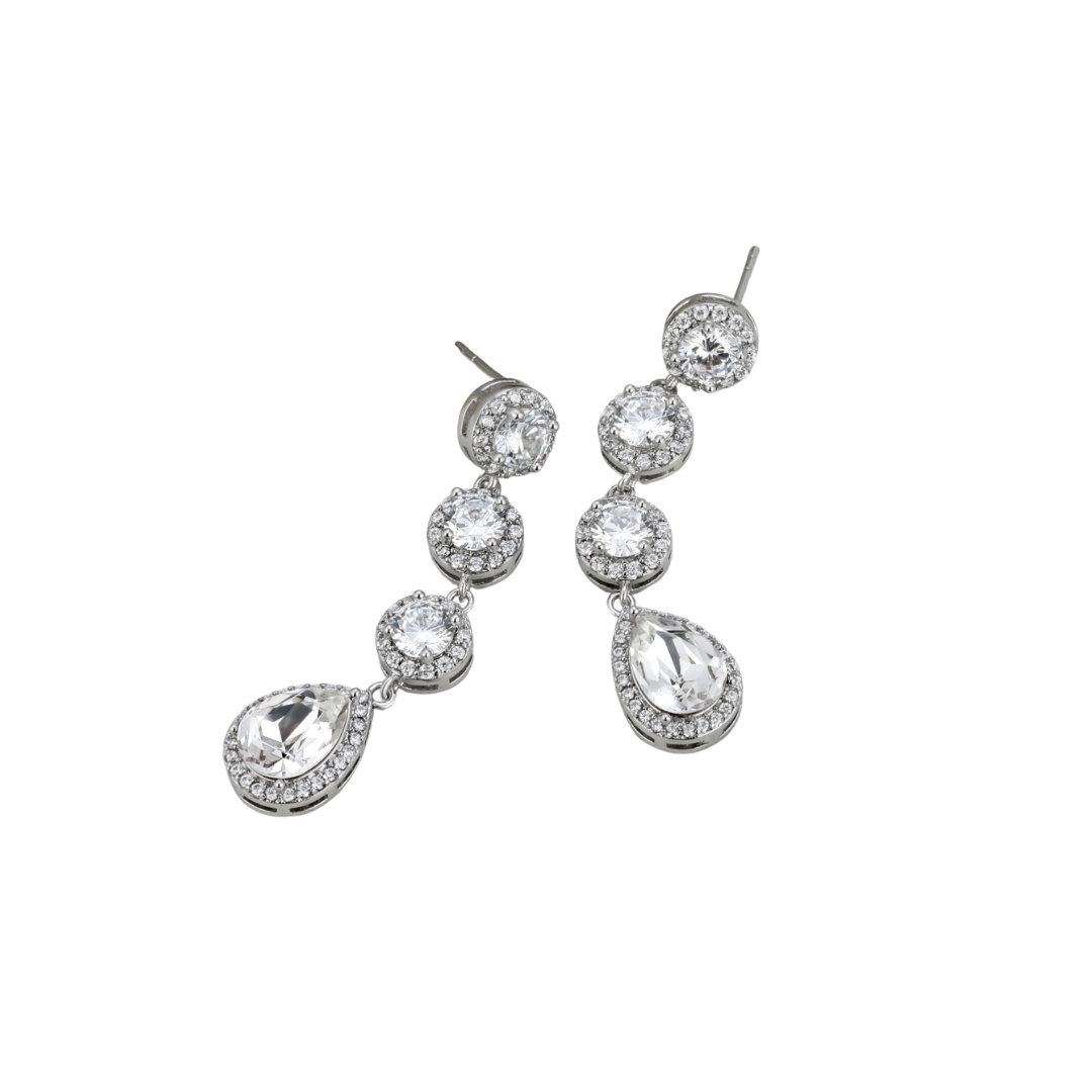 Delicately crafted, these Elegant Dangle Drops are adorned with shimmering Austrian crystals, offering a refined sparkle perfect for bridal occasions. Rhodium plating ensures lasting shine and durability, making this timeless accessory a captivating addition to any ensemble.