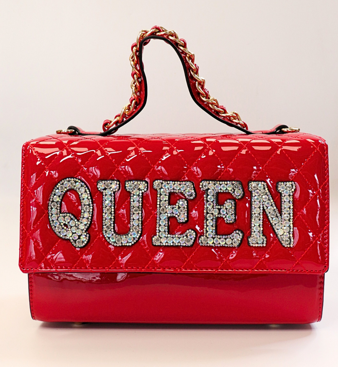 Enhance your royal look with our Queen patent handbag, complete with a matching patent wallet and a stylish long crossbody strap. Choose from a variety of sophisticated colors, including black, red, maroon, and pink.